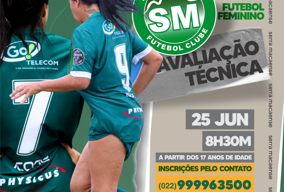 Atenção Atletas!Avaliação para equipe de futebol feminino do Verdão, para atletas apartir dos 17 anos de idade.O evento acontecerá no dia 25 de junho (domingo), às 8h30min, no gramado sintético do campo da praça da Glória. Para... (leia mais)
