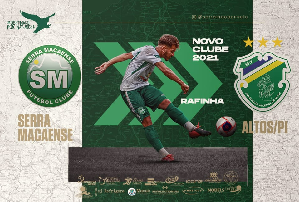 O Serra Macaense informa que o meia Rafinha, 25 anos, foi emprestado para o Altos/PI, para a disputa do Campeonato Piauiense 2022. Com o Verdão, o atleta tem contrato válido até março de 2024. Desejamos sucesso ao profissional.#ObstinadoPorNatureza... (leia mais)