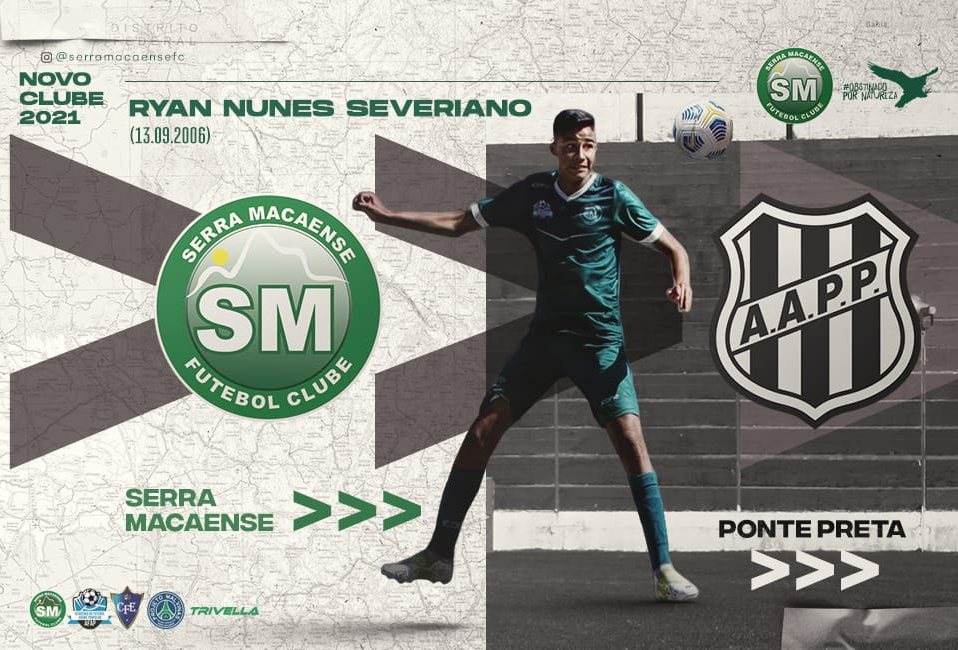 O Serra Macaense Futebol Clube comunica a transferência do jovem Ryan, que completará 15 anos no próximo dia 13, para a Ponte Preta/SP. O Verdão permanece com 30% dos direitos econômicos para futura transação do atacante de... (leia mais)
